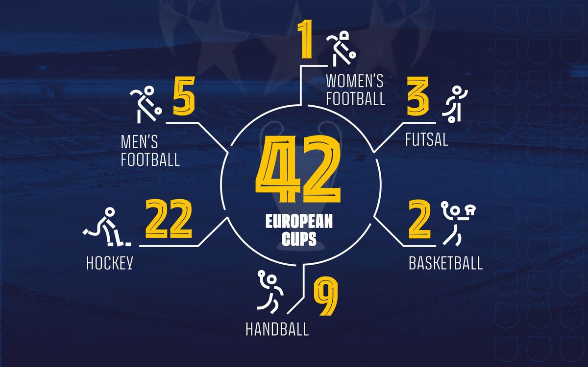 42 European Cups place FC Barcelona as the multi-discipline sports club with most European titles, amongst those who have won at least one European Cup in men's football.