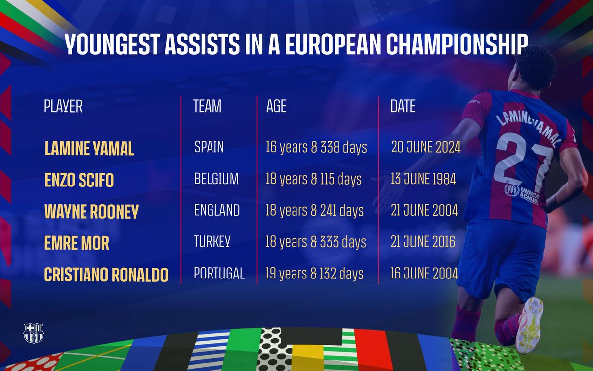 After already becoming the youngest ever player for the national team and the youngest ever goalscorer, now Lamine Yamal heads the list for the youngest ever participants in the prestigious European tournament.