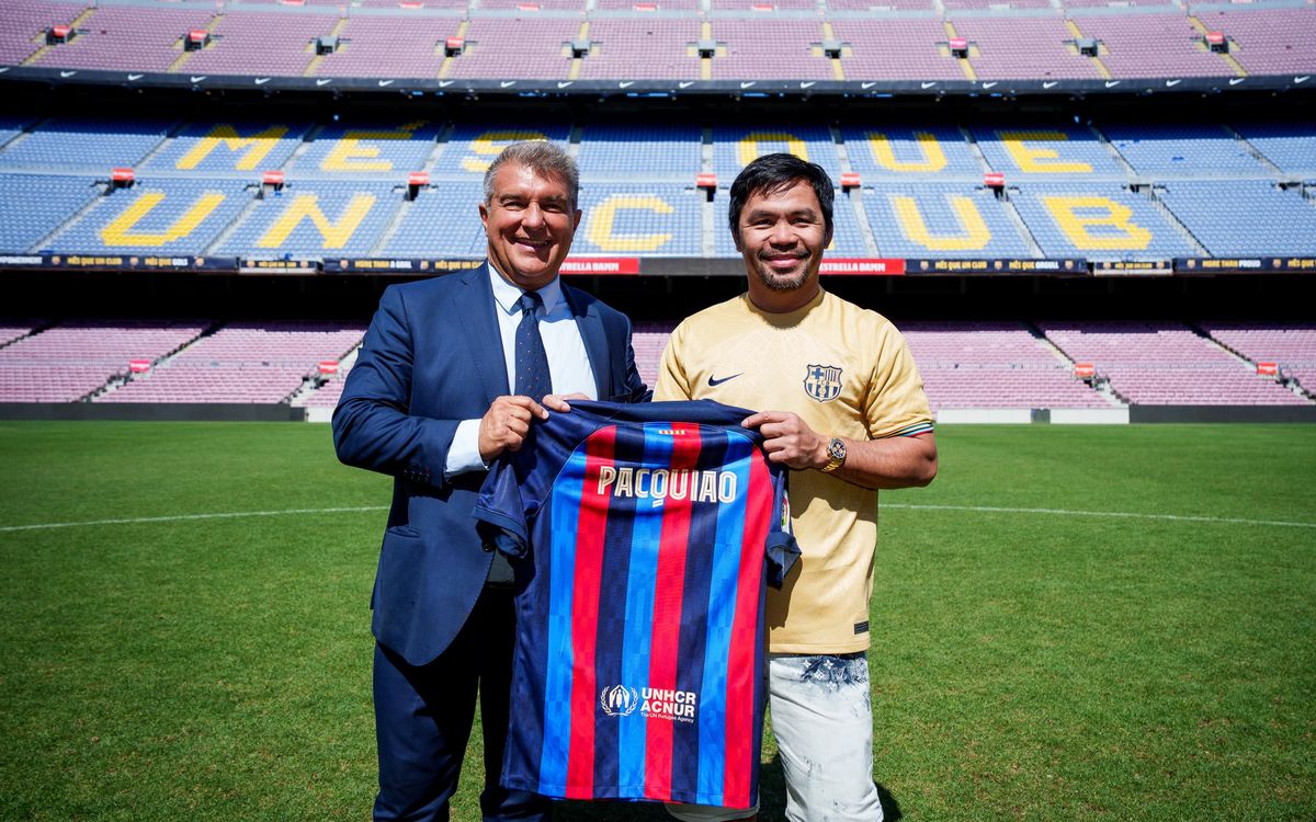 Laporta presented the boxer with personalised home and away shirts in the brand new design, to which Pacquiao responded by saying “it is an honour to be here and to visit this big stadium in Barcelona, to meet the president and the club members, and I am very grateful for the welcome I have received.”