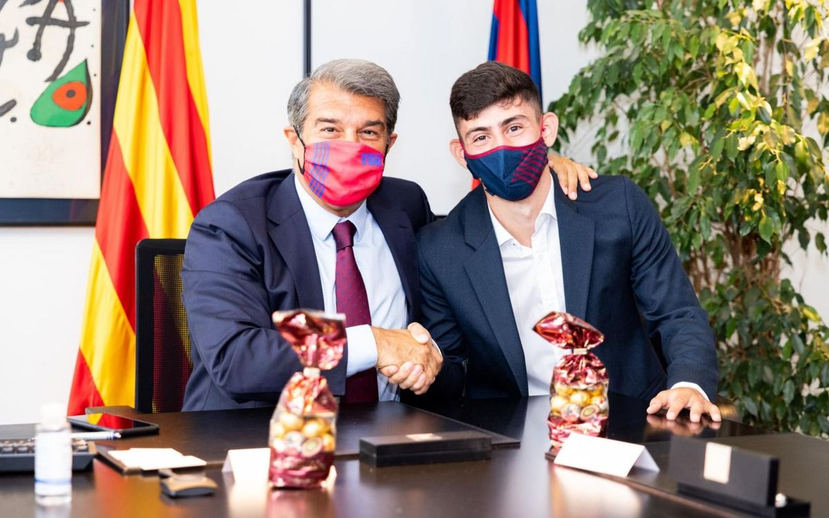 The player was accompanied by Barça president Joan Laporta and the first vice president Rafael Yuste along with his family and agents.