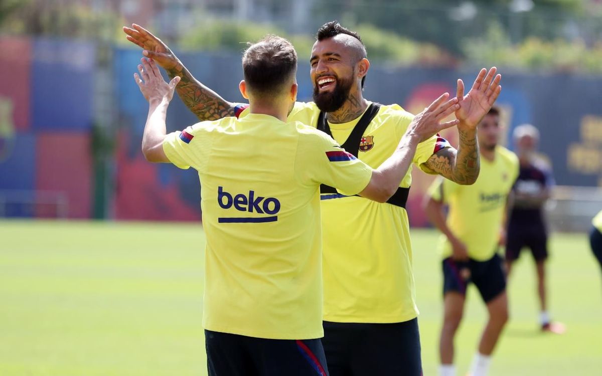 On Saturday morning, the team had their final workout before the trip south, where the senior squad members were joined once again by a number of players from Barça B: Iñaki Peña, Riqui Puig, Collado, Ansu Fati, R. Araujo, Morer, Monchu and J. Cuenca.