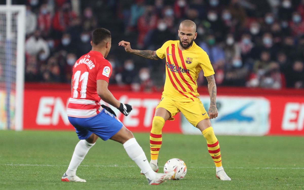 But the man who got the team out of a rut a week before in the Balearic Islands finally managed to do the same at Los Cármenes. The cross was hoofed in by the oldest player ever to appear for Barça in a Liga fixture, Dani Alves, and De Jong rose brilliantly to head it goalward.