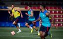 In high temperatures,Xavi's team train with the game against Mexican side Pumas coming up on Sunday