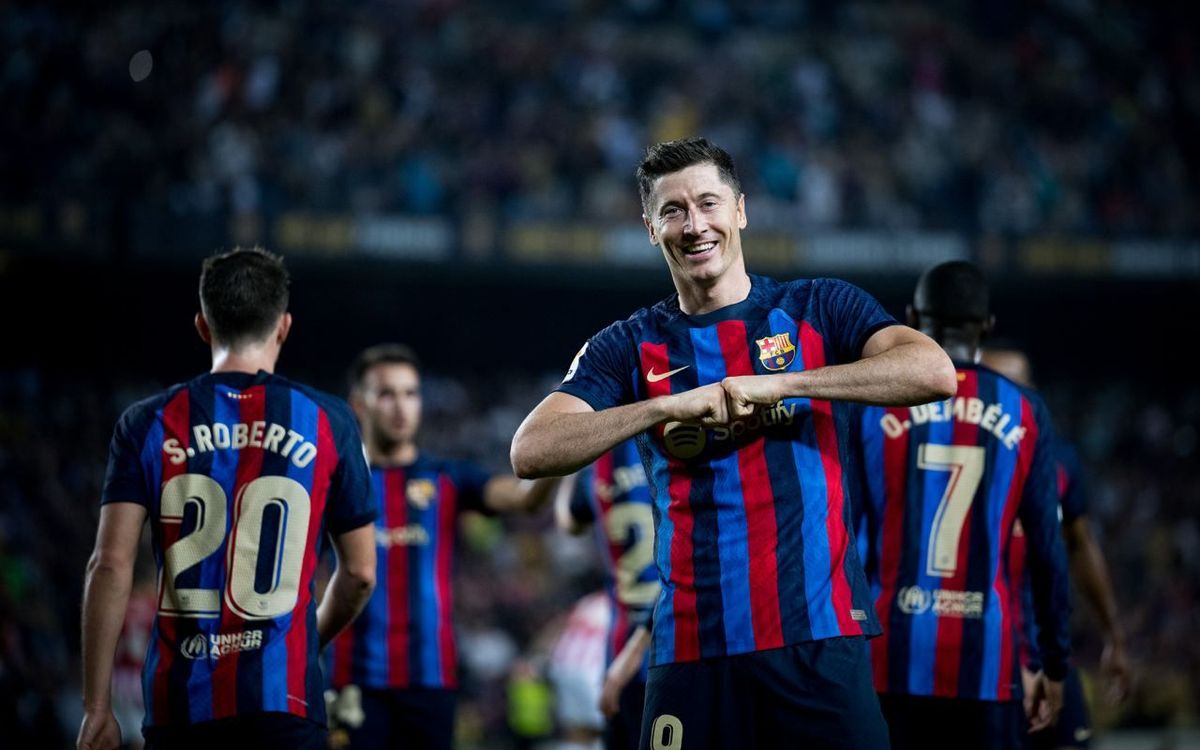 The 24 scorers, in descending order, are Lewandowski (17 goals), Aubameyang (13), Ferran Torres (9), Depay (8), Pedri (7), Luuk de Jong i Dembélé (6), Frenkie de Jong and Ansu Fati (5), Jordi Alba and Araujo (3), Gavi, Sergio Busquets, Nico, Sergi Roberto and Jutglà (2), and Piqué, Eric García, Dani Alves, Raphinha, Riqui Puig, Kessie, Abde and Coutinho (1).
