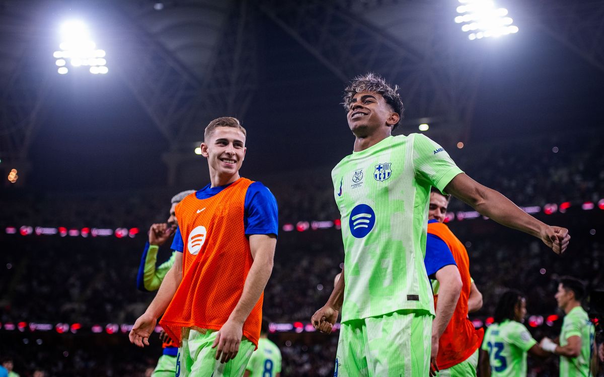 The goal by Lamine Yamal against Athletic Club in the Spanish Super Cup semi-final meant more than just helping to certify Barça's spot in the final. The Catalan's finish at the King Abdullah Sports City Stadium in Yeddah made him the second youngest scorer of all time in the competition, aged 17 years and 179 days old. Another new landmark for the young La Masia player.