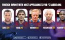 Second place in the list belongs to yet another Dutchman, Phillip Cocu, who played 292 games for Barça, while the leader, and by some margin, is Dani Alves, who since joining the club in 2008 has 370 appearances (and still counting, of course).