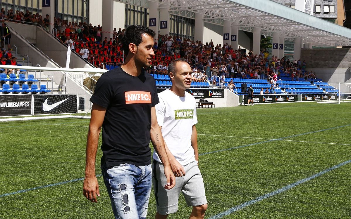 Sergio Busquets and Andrés Iniesta were the stars of a rather different press conference on Saturday. In the closing ceremony of the Nike Camp Andorra, they answered questions put to them by the children attending the camp. There were some unusual and entertaining questions and answers. For example, Sergio Busquets revealed that in the future he would like “to be a coach.” Nevertheless, he also added that he still has “many years of football”left in him as a player.” He also added, “I have no intention of changing teams.”