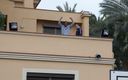 The North American fired in a spectacular basket from a balcony during his visit to the Santa Dorotea school in Barcelona