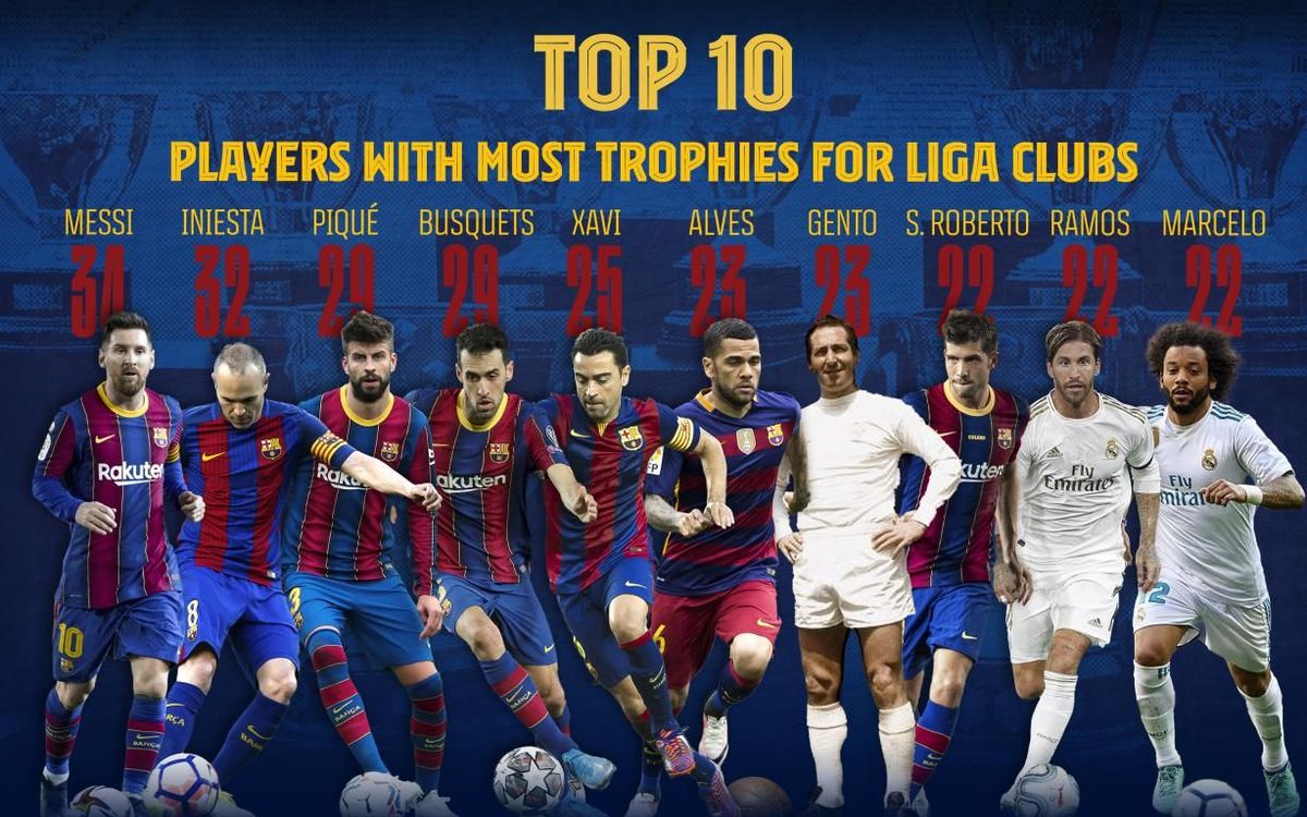 • Player with the most domestic and international titles. He has 35 since 2002. There are 10 leagues, 8 Spanish Super Cups, 7 Copas del Rey, 4 Champions Leagues, 3 Club World Cups and 3 European Super Cups.