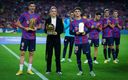 Alexia, Lewandowski and Gavi show off their awards at the Spotify Camp Nou