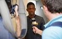 The 20-year-old striker speaks to the club media shortly after arriving in Barcelona ahead of his official presentation on Monday
