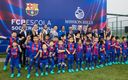 Ronaldinho was the star during the presentation of some of the boys and girls who will be forming part of the future FCBEscola, participating in a series of three-on-three training matches, in which he taught them some tricks to improve their technique.
